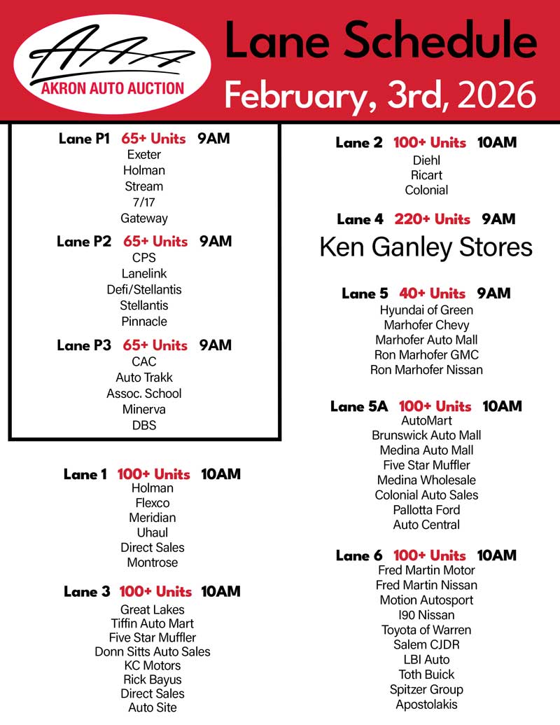 Find out where dealers are running their cars this week at Akron Auto Auction